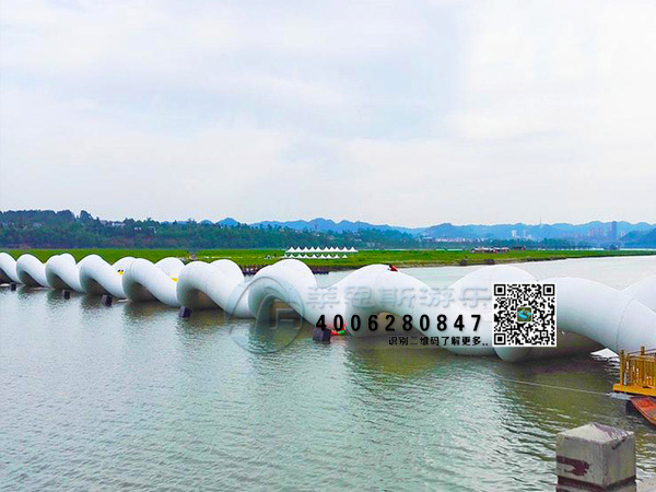 蹦床桥项目一般设计在静水水面,或者流速很缓慢的河面中,整体由桥台和充气胎桥面、拉锁和气压系统构成。蹦床桥价格需要结合景区水面测量规划,结合设计方案而定。
